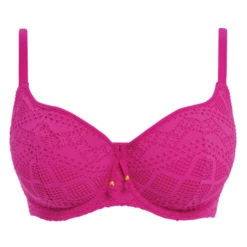 Das Sundance wattierte Bikinitop von Freya Bademode ist in der Farbe Orchid erhältlich. Das schöne Bikinitop ist aus gehäkeltem Stoff mit schönen Mustern gefertigt, was dem Top einen Retroeffekt verleiht. Zwischen den Cups befinden sich schöne Details mit Metallperlen. Kombinieren Sie dieses Bikinitop mit einem der Sundance Bikini Hosen für den perfekten Strandlook!