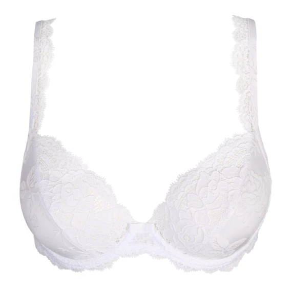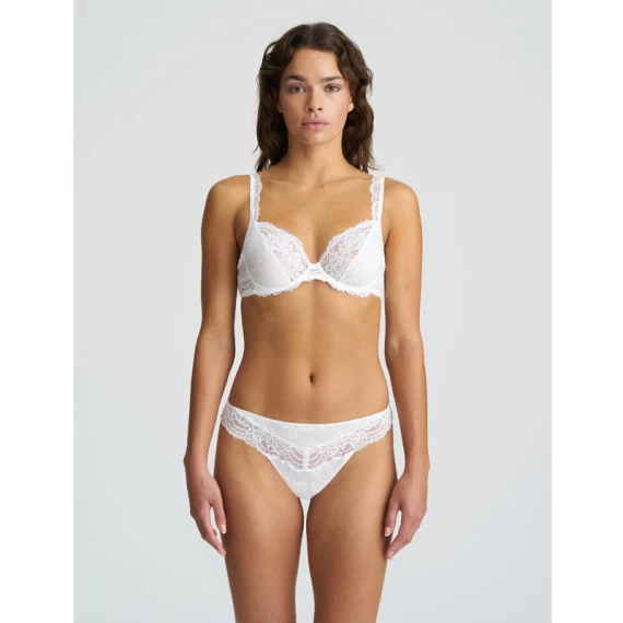 Der Bügel BH Sylvia von Marie Jo Dessous ist in der Farbe Weiß erhältlich. Dieser BH hat Cups aus einem raffinierten, glänzenden Stoff und verspielte Spitze an den Trägern des BHs und am oberen Rand der Cups. Die Schleife in der Mitte der Schultergurte ist das Tüpfelchen auf dem i. Die Farbe Weiß ist ein Must-Have unter den Dessous, vor allem im Sommer!