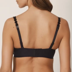 Der nahtlose Bügel BH Tom von Marie Jo L’Aventure ist in der Farbe Charbon erhältlich. Dieser BH hat weiche, nahtlose (nicht vorgeformte) Cups. Die Cups bedecken einen ziemlich großen Teil des Busens und sorgen für eine schöne Anhebung. Dieser BH ist für Frauen mit einer größeren Körbchengröße geeignet und bietet ausreichend Unterstützung für den festeren Busen. Auf diese Weise bleibt das natürliche Aussehen des Busens erhalten. Die nahtlosen Cups machen diesen BH unsichtbar unter der Kleidung. Die Träger haben einen glamourösen Look, der an eine elegante Perlenkette erinnert. Vervollständigen Sie Ihr Set mit einem der passenden Slips aus der Tom Kollektion.