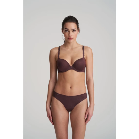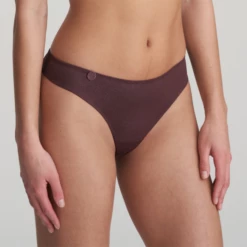 Der Tom String von Marie Jo L’Aventure ist in der Farbe Aubergine erhältlich. Dieser dunkelbraun-lilafarbene String in angesagter Tweed-Optik lässt Ihre Beine durch den höheren Beinausschnitt optisch länger wirken. Das Bündchen hat ein süßes rundes Detail. Vervollständigen Sie Ihr Set mit einem der passenden BHs aus der Tom-Kollektion.