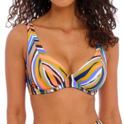 Das Torra Bay Bügel Bikinitop von Freya Bademode ist in der Farbe Multi gehalten. Der Print dieses Tops ist eine Mischung aus Tierprint und abstraktem Streifenmuster. Dank des Bügels bietet dieses Top eine perfekte Unterstützung für den Busen! Sie können die Schulterträger gerade oder als Racerback tragen. Kombinieren Sie dieses Bikinioberteil mit einem der Torra Bay Bikini Hosen.