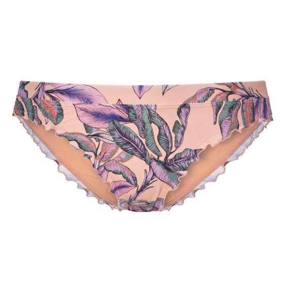 Die Bikini Hose Tropical Blush von Beachlife ist mit einem sommerlichen Palmenmuster auf einem rosa Hintergrund erhältlich. Die Bikini Hose hat Rüschen an den Beinausschnitten, was einen spielerischen Effekt ergibt. Kombinieren Sie mit einem der Oberteile aus der Tropical Blush Kollektion.
