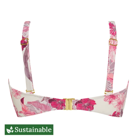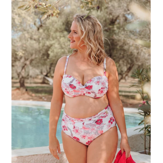 Das Tropics Bandeau-Bikini Oberteil von Annadiva Swim ist in der Farbe Ecru erhältlich. In diesem Blumenmuster fühlen Sie sich ganz Frau. Träumen Sie am Strand, während Sie den Sonnenuntergang beobachten. Fröhlich und romantisch zugleich. Dieses Oberteil kann auf verschiedene Weise getragen werden: gerade, über Kreuz oder trägerlos. Machen Sie das Bikini Top doch einfach zu Ihrem eigenen! Die festen, vorgeformten Cups heben und zentrieren Ihren Busen wunderbar. Kombinieren Sie das Oberteil mit einem der Bikini Hosen aus der Kollektion Tropics Ecru. Flower bombshell!