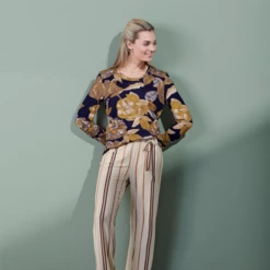Das Waona Gwyneth Pyjama Shirt ist in der Farbe Nightblue erhältlich. Das herbstliche Blattmuster leuchtet wunderschön auf dem nachtblauen Hintergrund. Dieses Oberteil schmiegt sich sanft an den Körper an und wird aus einer umweltfreundlichen Alternative zu Viskose hergestellt, die aus Holz aus erneuerbaren und zertifizierten Wäldern in Europa gewonnen wird. Der Stoff ist herrlich leicht, bequem, fühlt sich seidig an und hat einen leichten Glanz. Kombinieren Sie dieses Pyjama Shirt mit der Pyjamahose Gwyneth für ein komplettes Outfit!